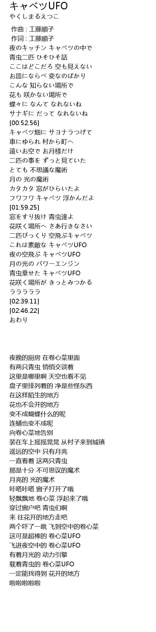 | [02:15.42] | 夜の空飛ぶ キャベツUFO |