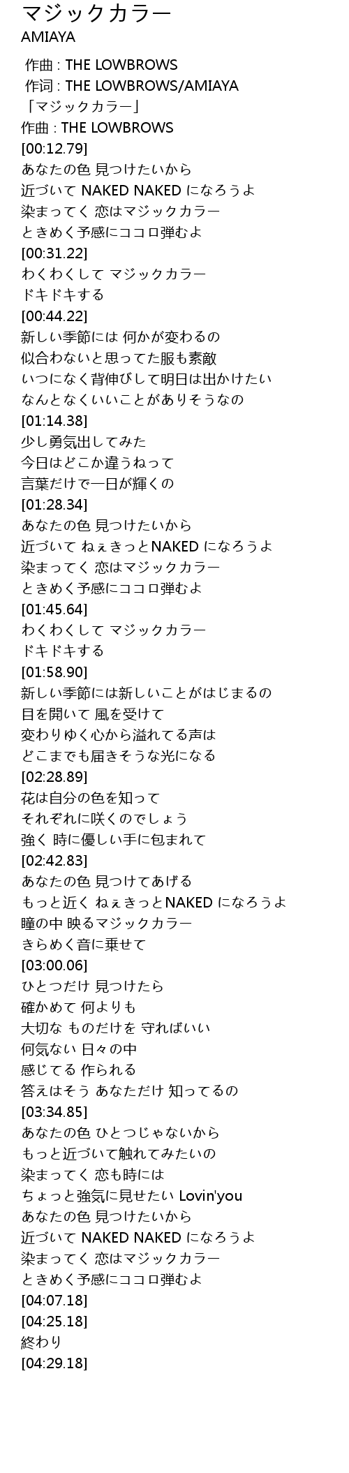 | [00:00.26] | 作词 : THE LOWBROWS/AMIAYA |