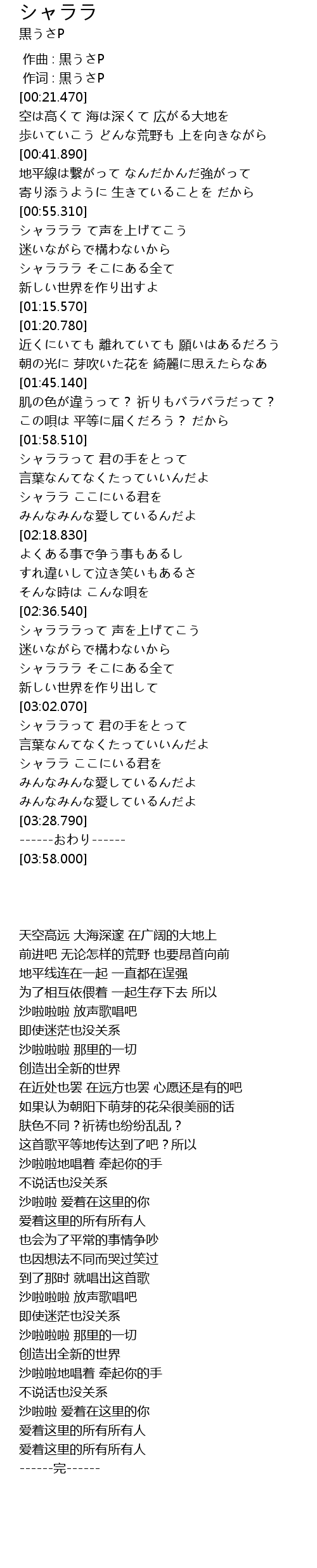 | [03:23.290] | みんなみんな愛しているんだよ |