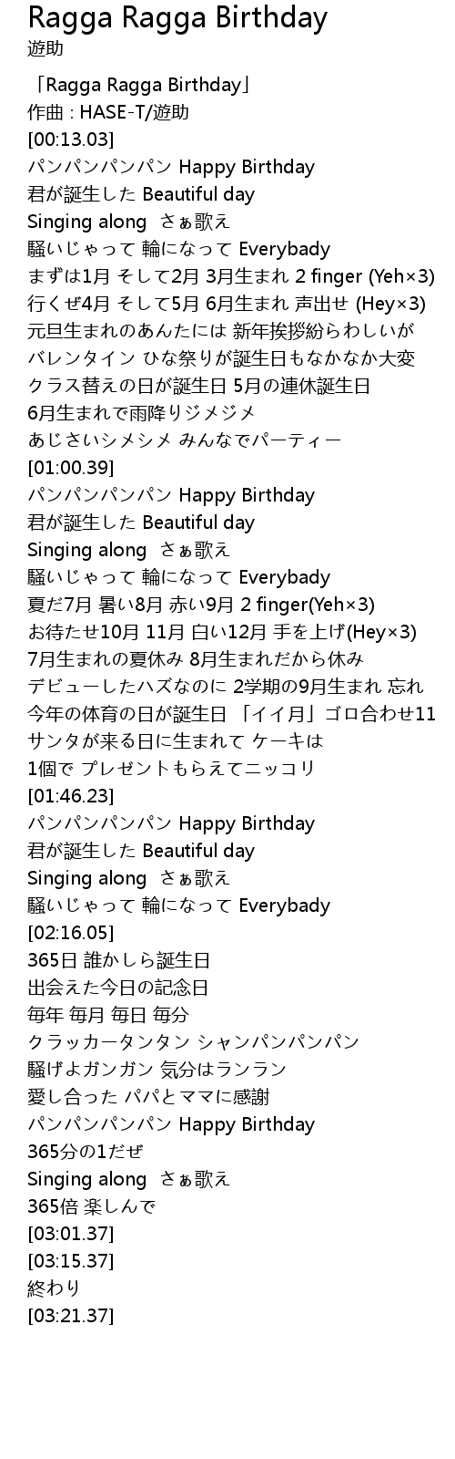 | [00:00.03] | 「Ragga Ragga Birthday」 |