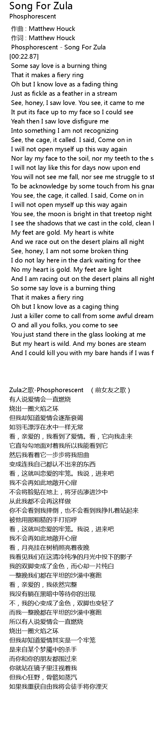 | [00:00.05] | zuo ci : Matthew Houck |