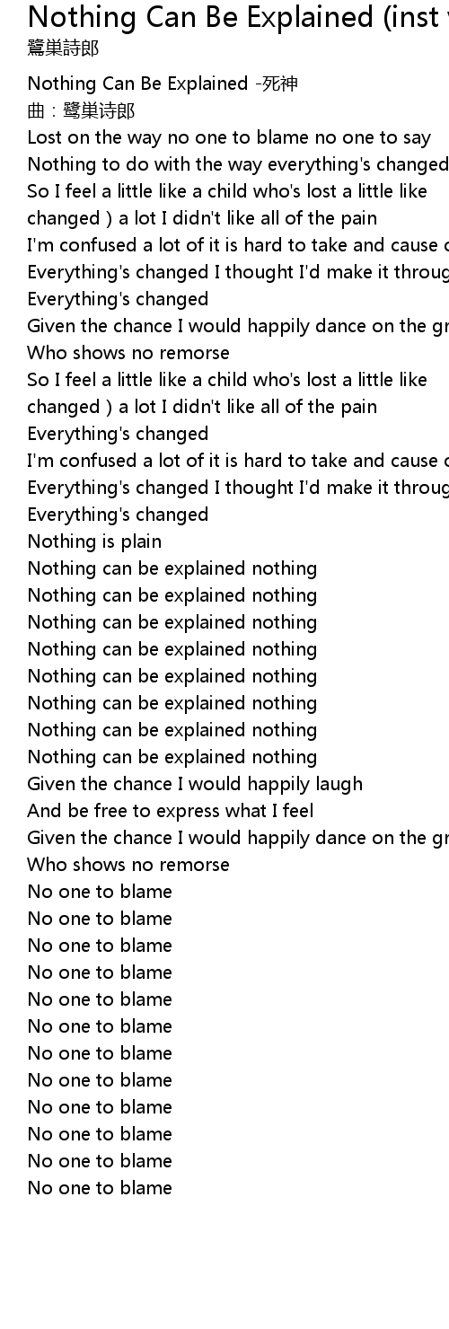 | [00:00.820] | Nothing Can Be Explained sǐ shén |