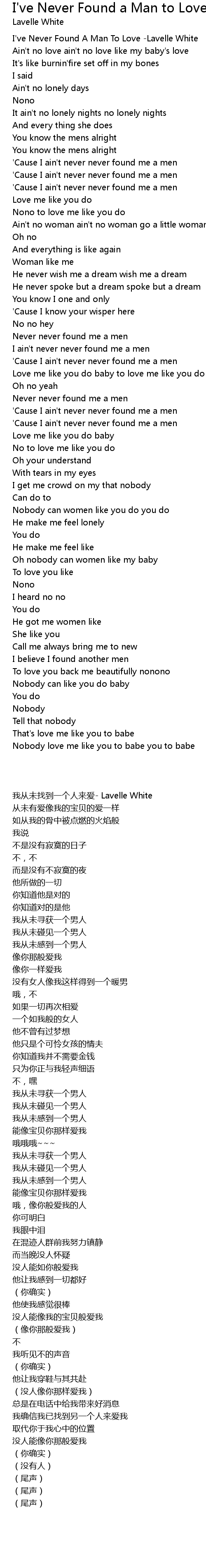 [00:00.471] I've Never Found A Man To Love -Lavelle White