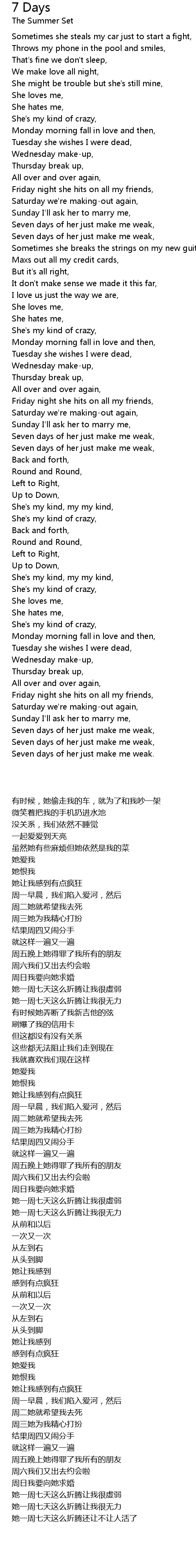 7 Days Lyrics