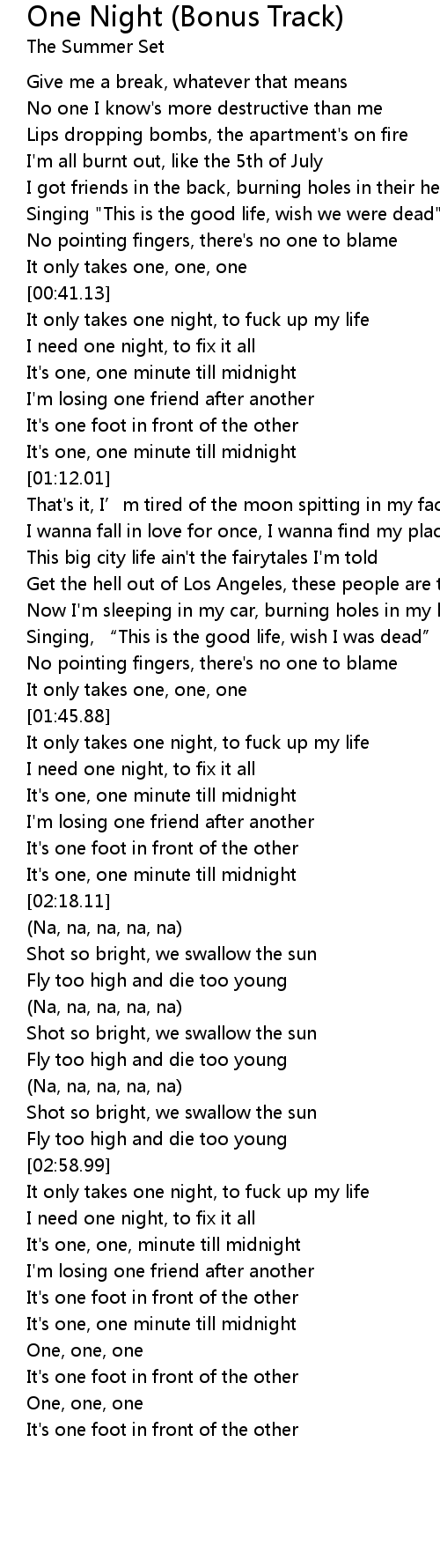 | [00:41.73] | It only takes one night, to fuck up my life |