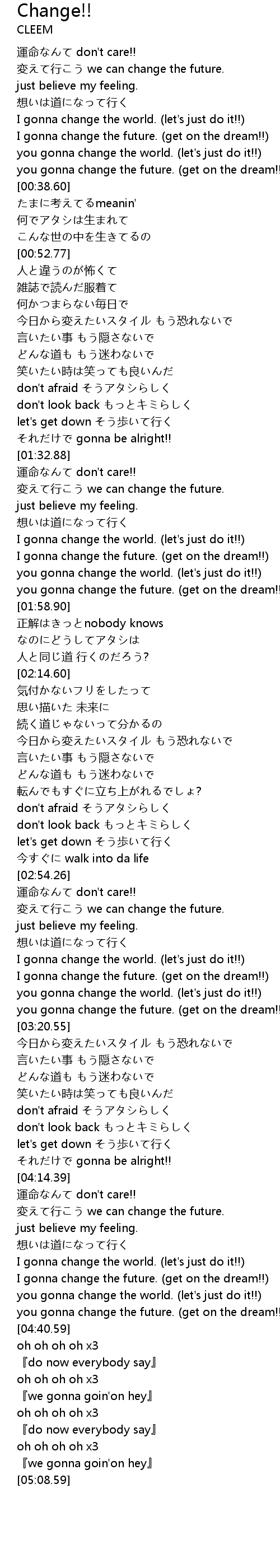 | [04:33.39] | you gonna change the world. (let's just do it!!) |