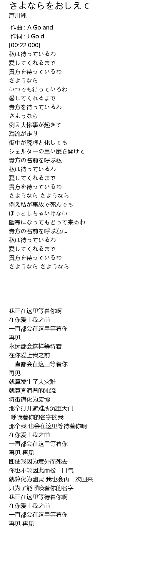 | [01:22.000] | 私は待っているわ |