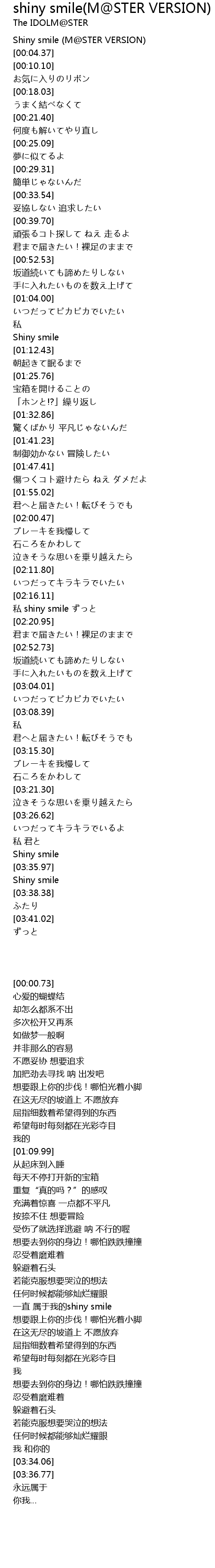 | [00:00.73] | Shiny smile M STER VERSION |