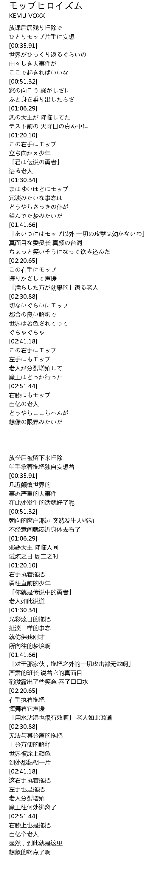 | [00:33.46] | ひとりモップ片手に妄想 |