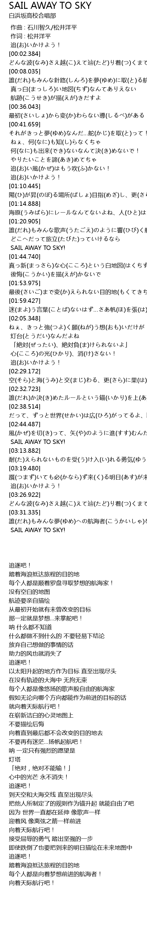 | [01:29.857] | SAIL AWAY TO SKY! |