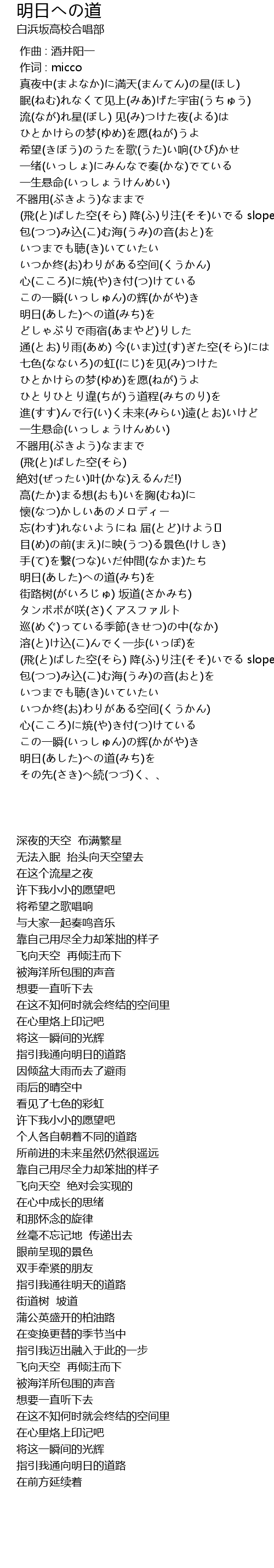 | [03:08.563] | 明日(あした)への道(みち)を |