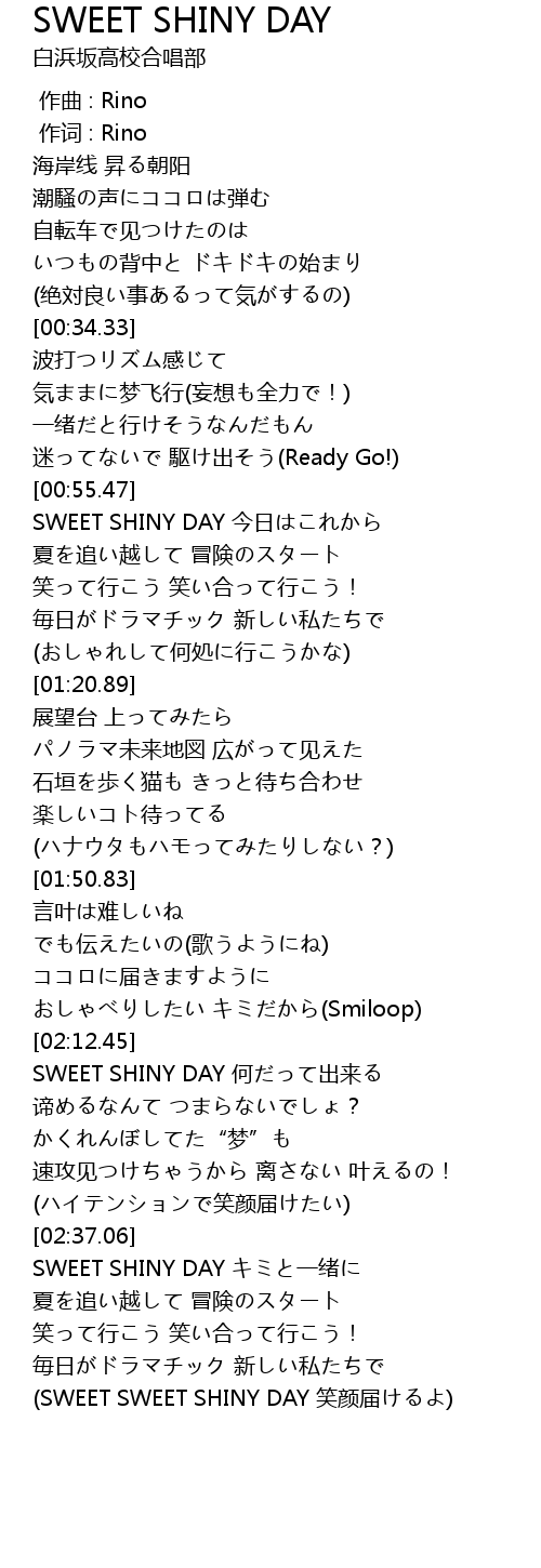 | [03:21.50] | (SWEET SWEET SHINY DAY 笑颜届けるよ) |
