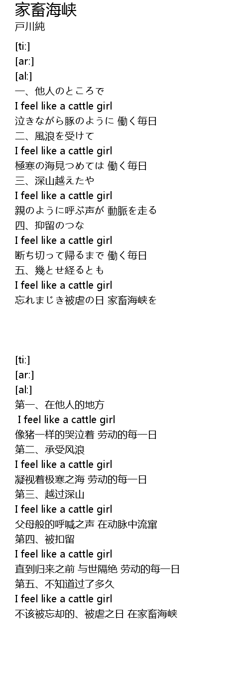 | [03:56.14] | 忘れまじき被虐の日 家畜海峡を |