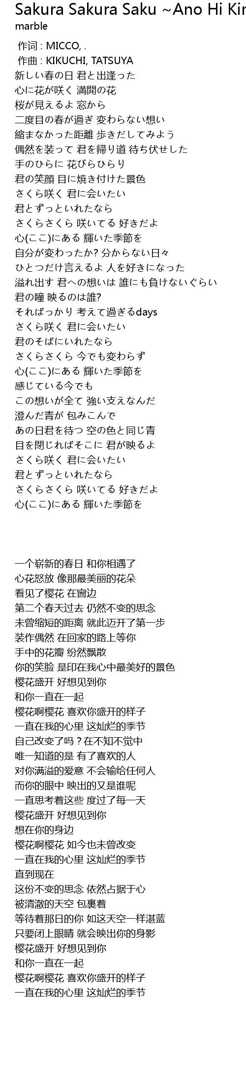 | [03:11.60] | さくらさくら 咲いてる 好きだよ |