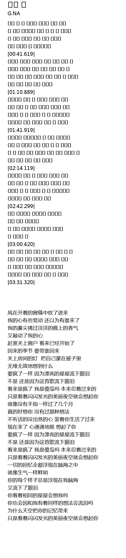 | [03:23.0] | 반짝이는 예쁜 하늘만 보면 니 생각나 |