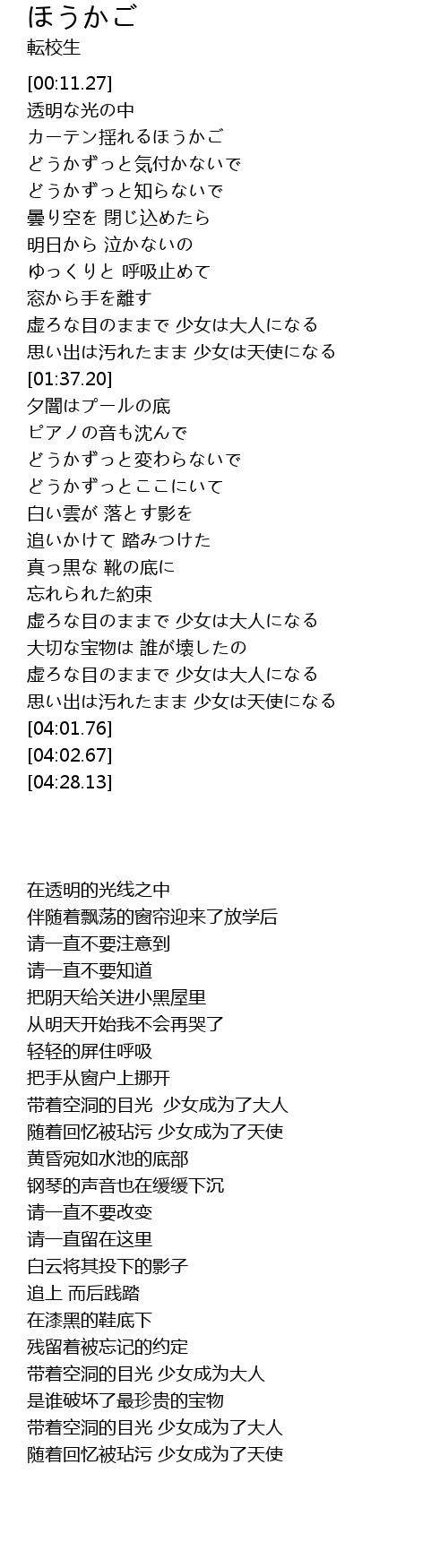 | [00:20.61] | カーテン揺れるほうかご |