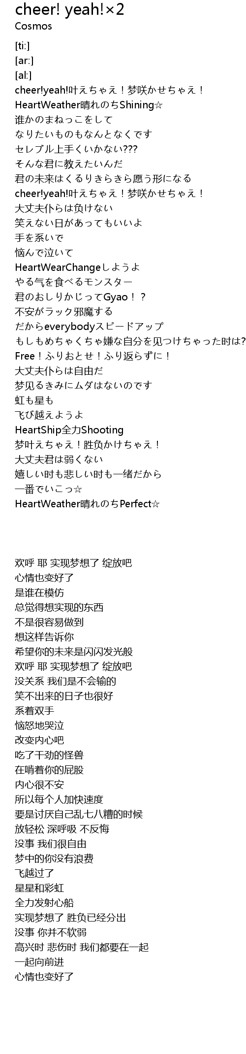 | [00:00.50] | cheer! yeah! yè! mèng xiào! |