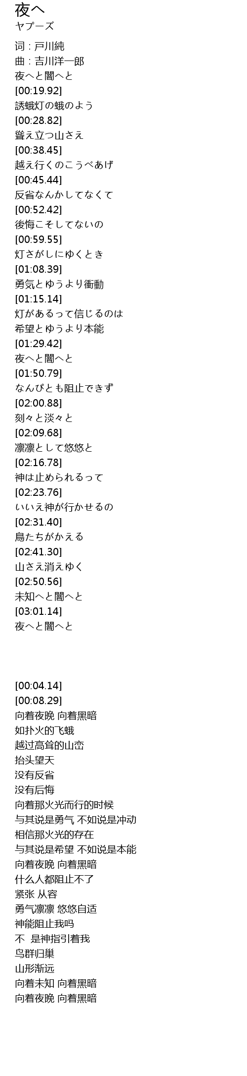 | [03:03.28] | 夜へと闇へと |