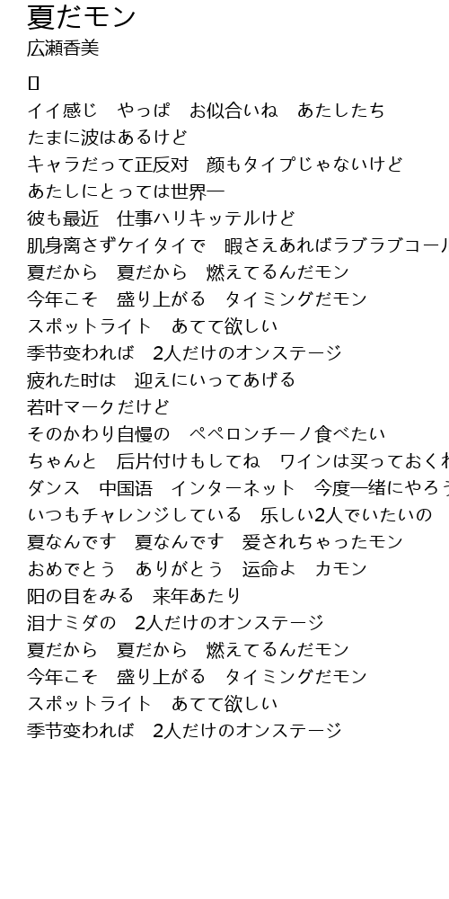 | 夏だから 夏だから 燃えてるんだモン | |