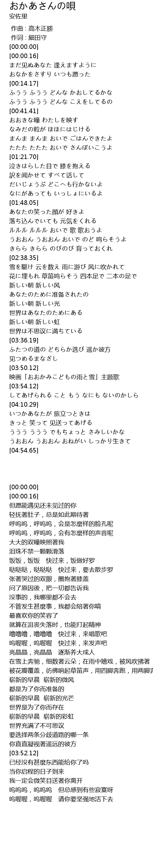 | [03:52.12] | 映画「おおかみこどもの雨と雪」主题歌 |