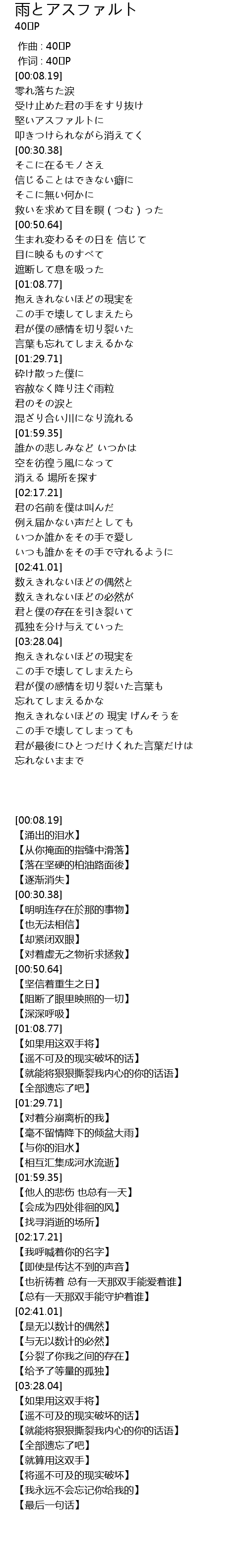 | [01:44.20] | 容赦なく降り注ぐ雨粒 |