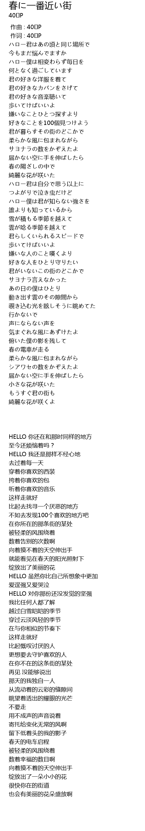 作词 : 40㍍P |