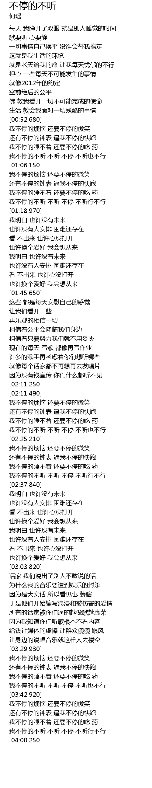| [03:53.070] | 我不停的不听 不听 不停 不听行不行 |