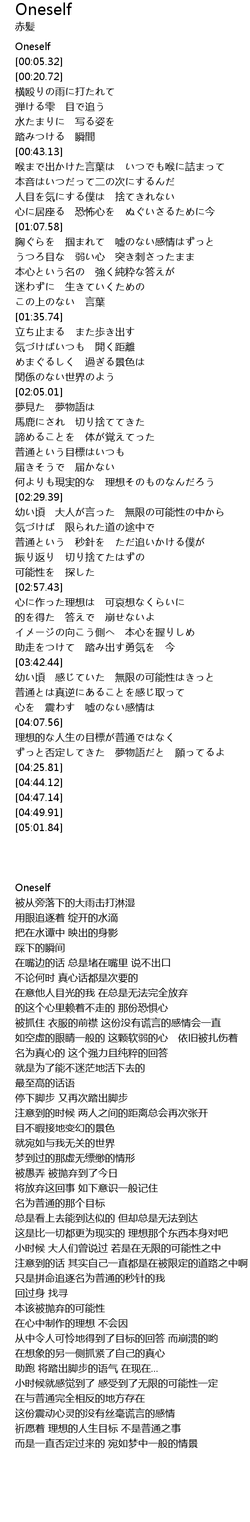 | [00:49.51] | 本音はいつだって二の次にするんだ |