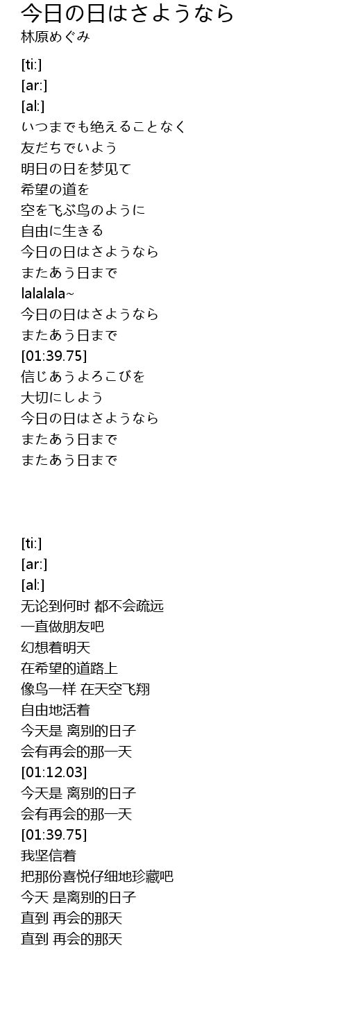 | [00:43.22] | 空を飞ぶ鸟のように |