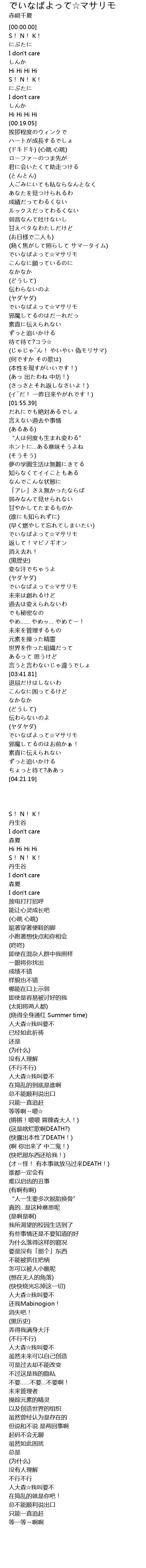 | [01:13.21] | でいなばよって☆マサリモ |