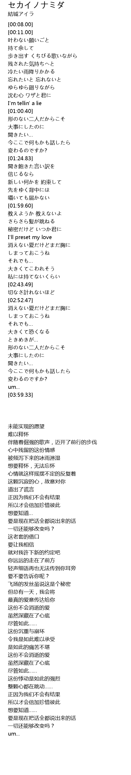 | [02:44.67] | 切なさ計れないほど |