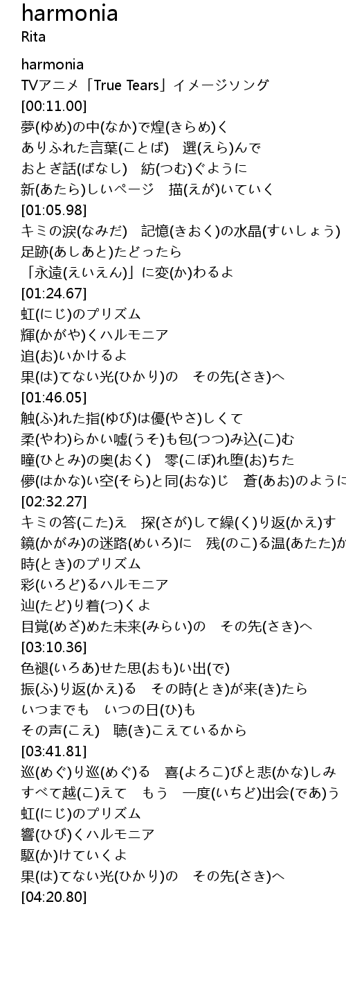 | [00:08.00] | TVアニメ「True Tears」イメージソング |