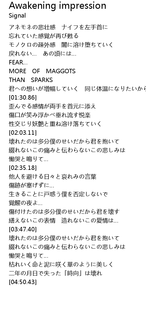 | [00:46.73] | アネモネの悲壮感 ナイフを左手首に |