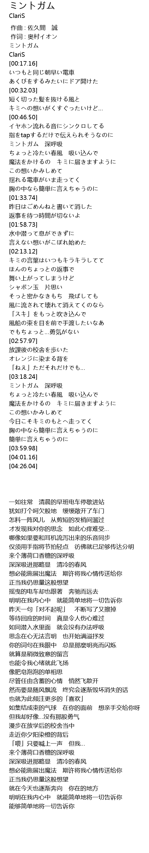 | [03:19.41] | ミントガム 深呼吸 |