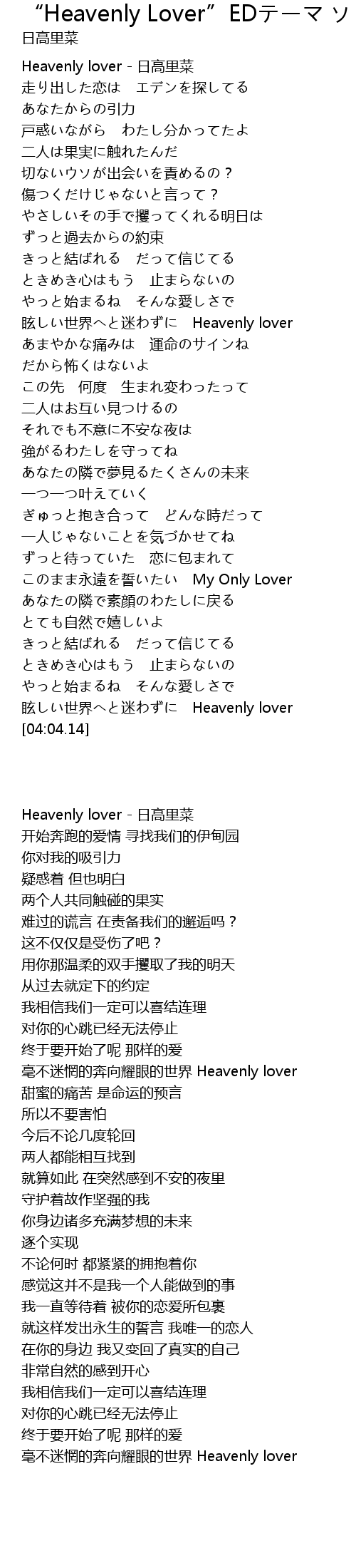 | [00:06.20] | Heavenly lover - 日高里菜 |