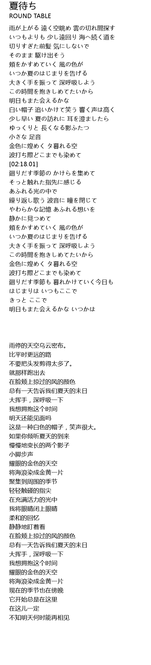 | [01:41.83] | 少し早い 夏の訪れに 耳を澄ましたら |