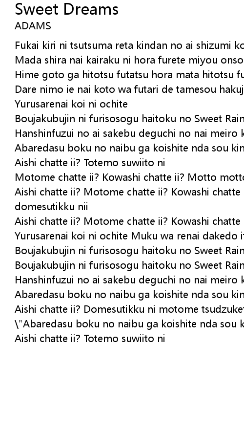 | Aishi chatte ii? Motome chatte ii? Kowashi chatte ii? Motto motto motto | |