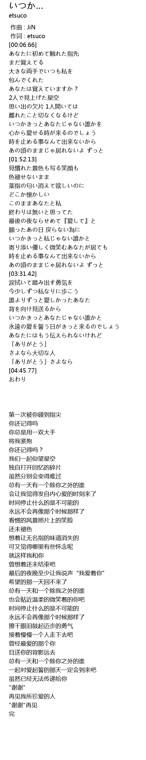 | [00:01.00] | 作词 : etsuco |