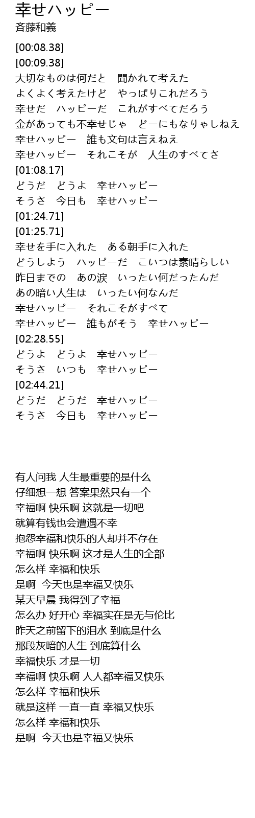 | [01:08.86] | どうだ どうよ 幸せハッピー |