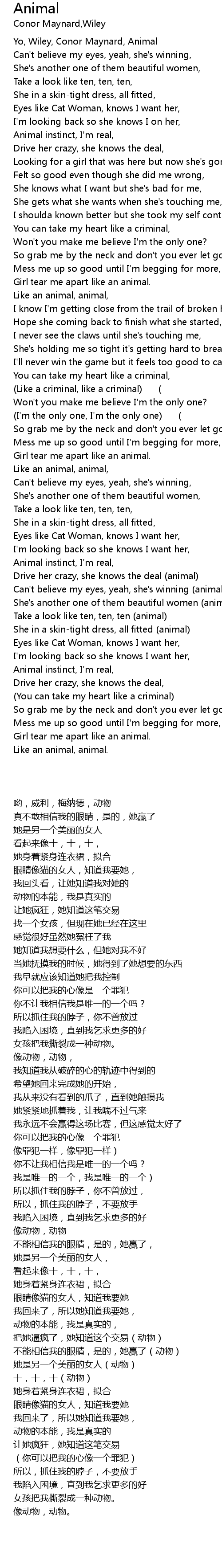 | [02:38.68] | Can' t believe my eyes, yeah, she' s winning animal |