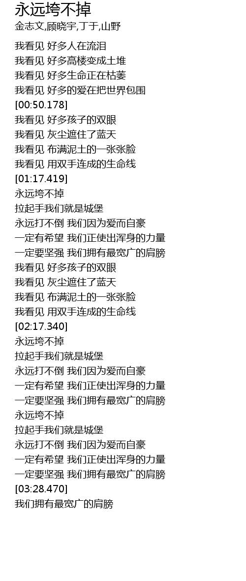 | [02:56.990] | 永远打不倒 我们因为爱而自豪 |