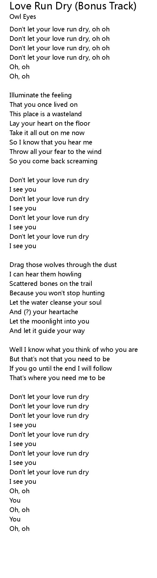 | Don't let your love run dry, oh oh | |