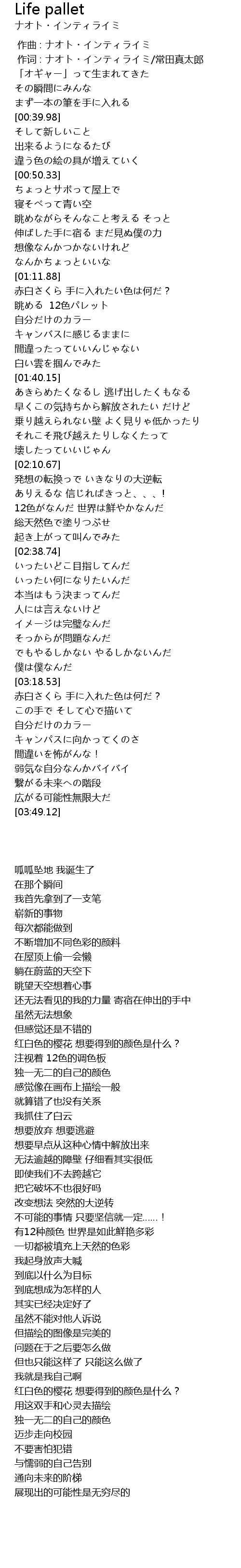 | [02:22.97] | 12色がなんだ 世界は鮮やかなんだ |