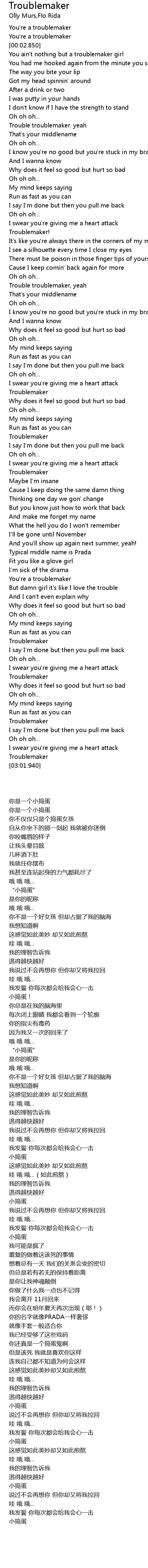 | [00:01.100] | You're a troublemaker |