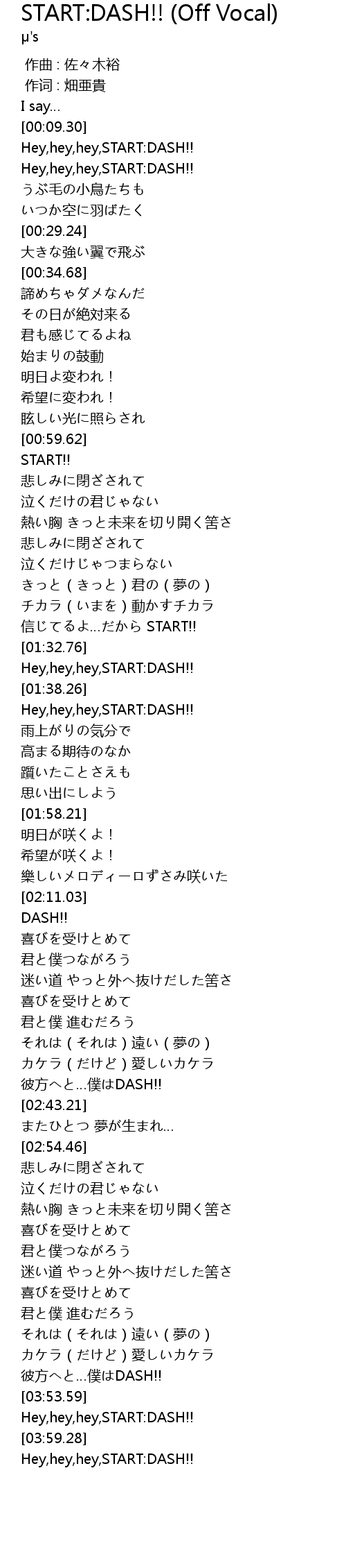 | [03:56.28] | Hey,hey,hey,START:DASH!! |