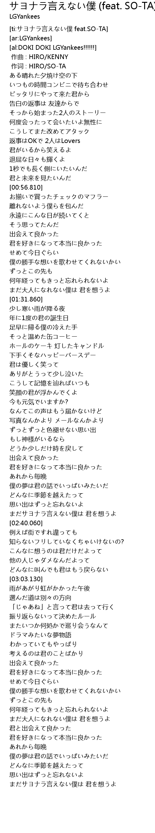 | [ti:サヨナラ言えない僕 feat.SO-TA] | |