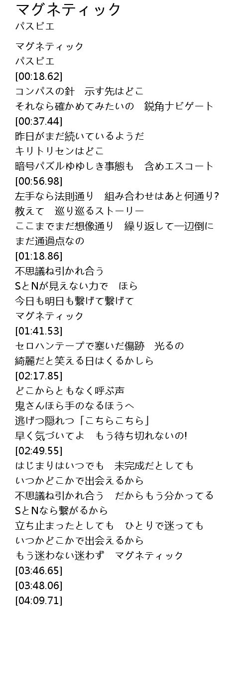 | [03:37.70] | もう迷わない迷わず マグネティック |