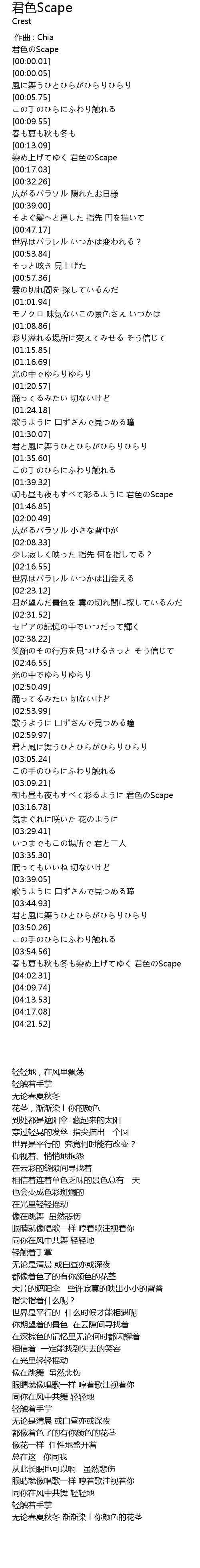 | [00:00.00] | 君色のScape |