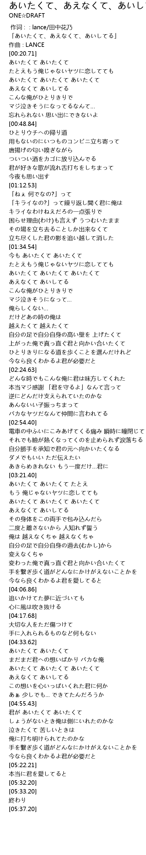 | [00:00.71] | 「あいたくて、あえなくて、あいしてる」 |