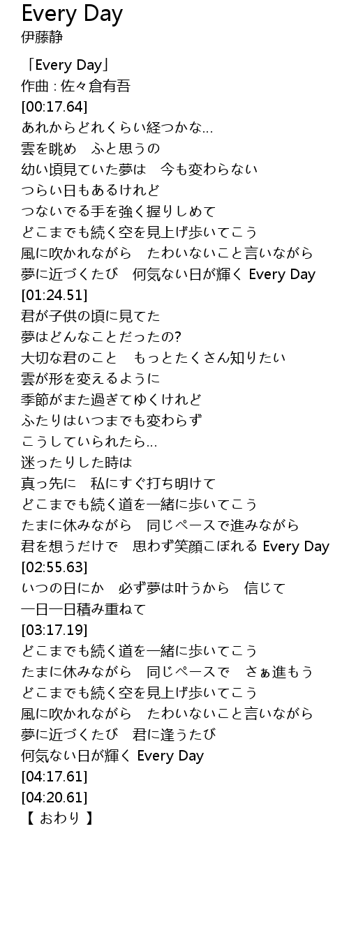 | [04:09.41] | 何気ない日が輝く Every Day |